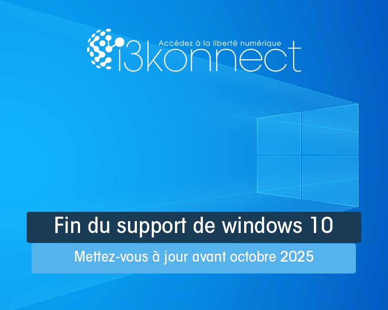 Fin du support windows 10 L’un des maîtres mots pour i3konnect est la proactivité. Il est important pour nous de vous tenir informés des évolutions dans le monde informatique autour des cyberattaques mais pas seulement ! 𝐀 𝐜𝐨𝐦𝐩𝐭𝐞𝐫 𝐝𝐮 𝐦𝐨𝐢𝐬 𝐝’𝐨𝐜𝐭𝐨𝐛𝐫𝐞 𝟐𝟎𝟐𝟓, 𝐥𝐞𝐬 𝐦𝐢𝐬𝐞𝐬 𝐚̀ 𝐣𝐨𝐮𝐫 𝐧𝐞 𝐬𝐞 𝐟𝐞𝐫𝐨𝐧𝐭 𝐩𝐥𝐮𝐬 𝐬𝐮𝐫 𝐥𝐞𝐬 𝐏𝐂 𝐞́𝐪𝐮𝐢𝐩𝐞́𝐬 𝐝𝐮 𝐬𝐲𝐬𝐭𝐞̀𝐦𝐞…